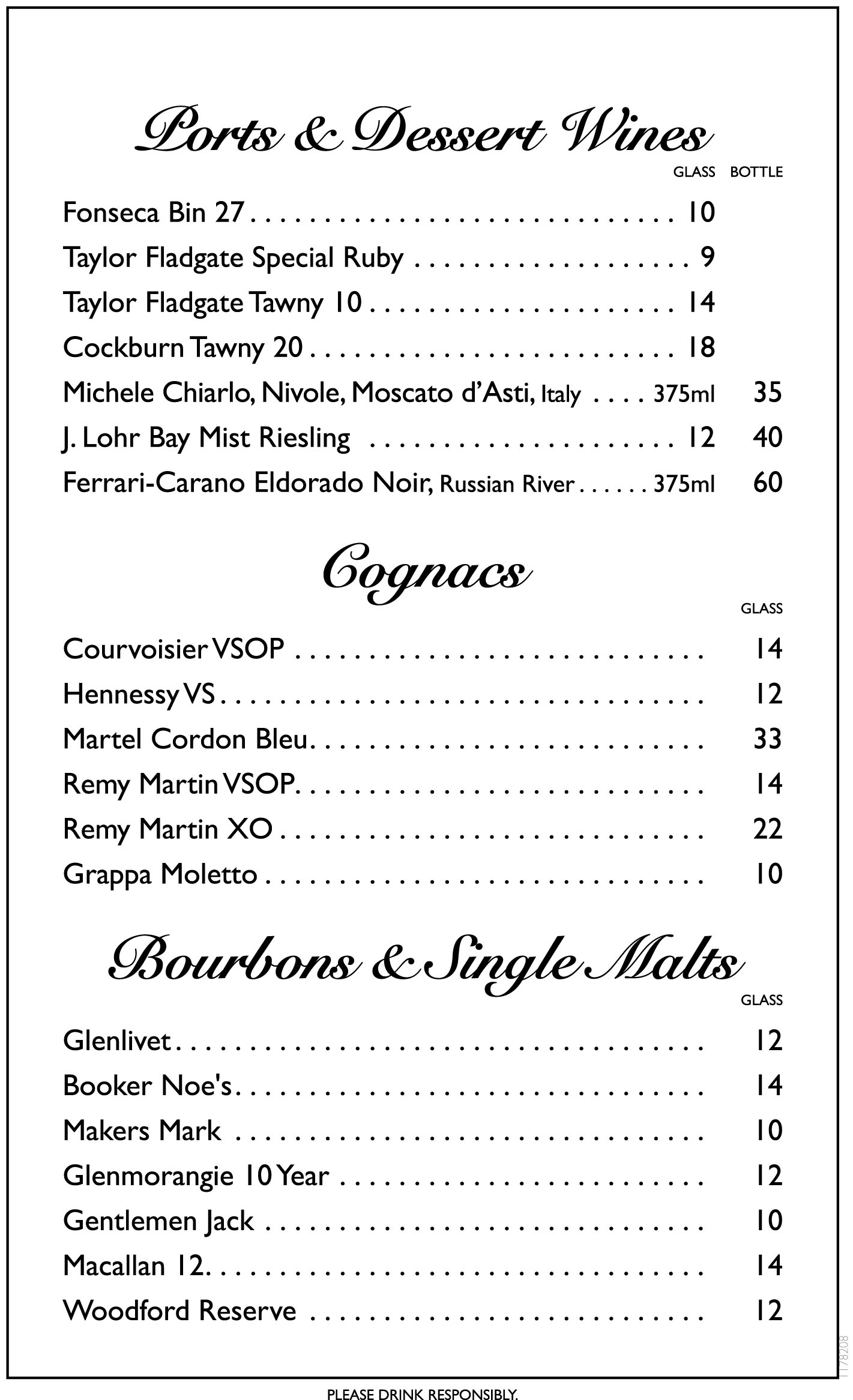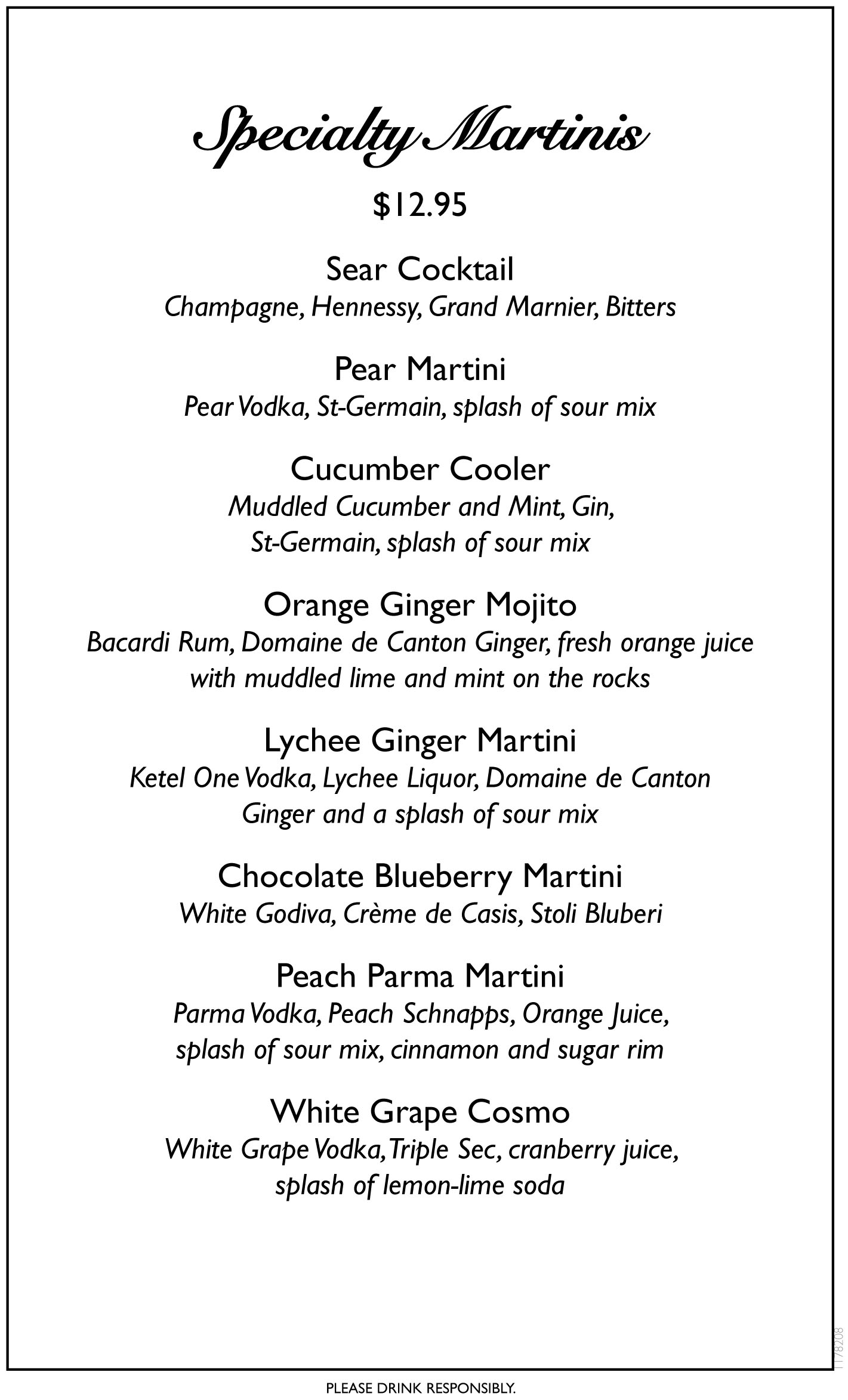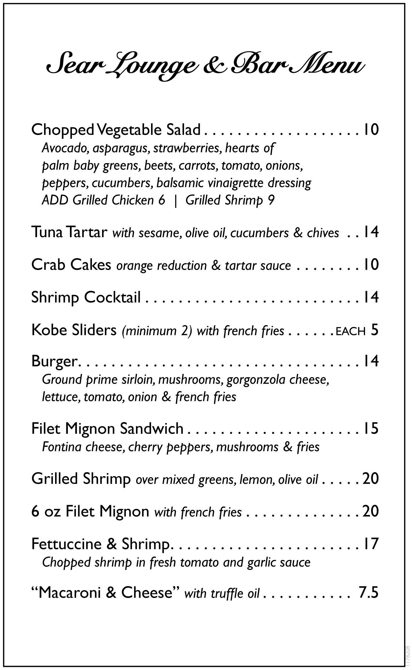 Bar Menu - SearHouse